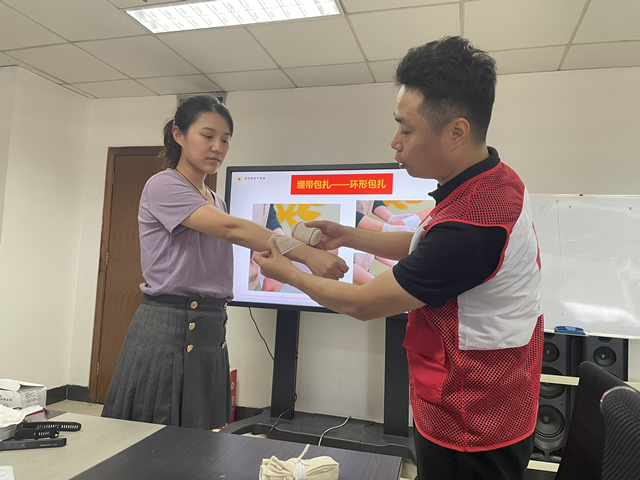 在两个多小时的急救课堂上,培训师王淼从原理和实操两个方面讲解了心肺复苏、海姆立克、外伤包扎等急救知识和aed的使用。在与生命的赛跑中,急救的重要性不言而喻,大家通过学习培训,初步掌握了一些急救知识,确保掌握初级急救技能,能在面对突发紧急情况时自救或救护别人。