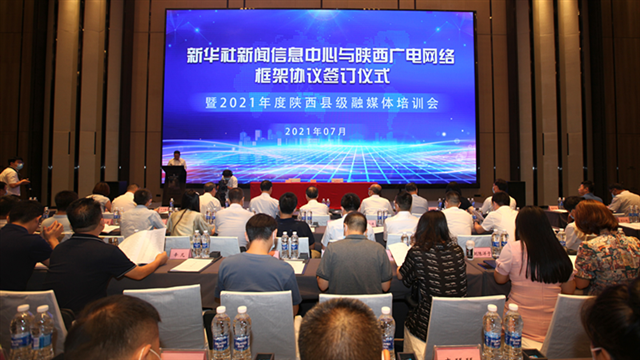 7月28日,由中共陕西省委宣传部主办,新华社新闻信息中心、陕西广电网络传媒(集团)股份有限公司联合承办的新华社新闻信息中心与陕西广电网络框架协议签订仪式暨2021年度陕西县级融媒体培训会在西安举行。来自陕西各地市宣传部门、县区融媒体中心相关负责人参加本次培训。