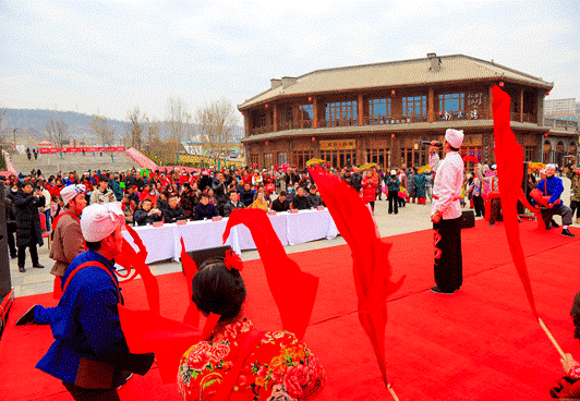 “一个在那山上哟,一个在那沟。咱们拉不上那话话,哎呀,招一招手……”一首陕北民歌《羊肚子手巾三道道蓝》唱响延安红街。歌手郭飞头戴白羊肚手巾,身着陕北民俗服装,将陕北民歌的粗犷、嘹亮唱得通彻。