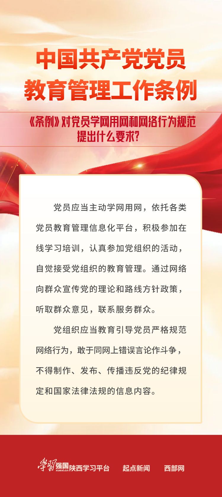 【学习卡片】《中国共产党党员教育管理工作条例》:《条例》对党员学网用网和网络行为规范提出什么要求? -ag捕鱼王
