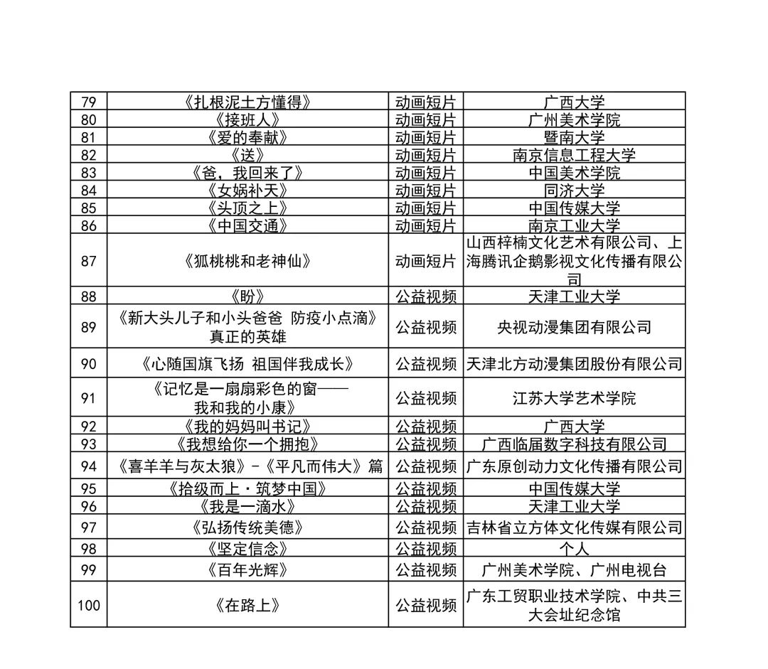 03 国家广电总局办公厅关于公布2020年下半年网络视听节目精品创作传播工程评选结果的通知